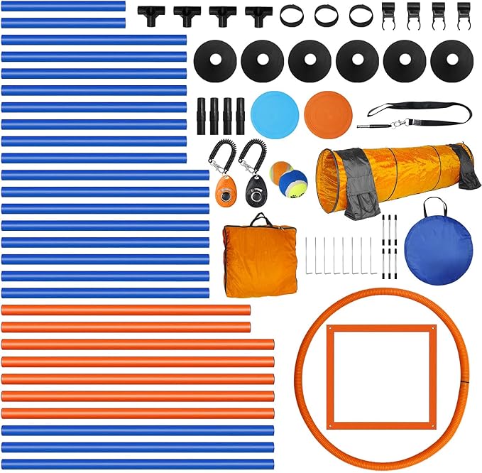 - Orange Color Fun & Health Dog Agility Course Backyard set: This agility training equipment is perfect for dogs sharpen obedience, speed, and dexterity. with interacting, jumping, running, playing, and most of exercising, you not only improve great bonding & health, but also bring much fun for you and your little cutes! This is best way to build trust with your pets.
