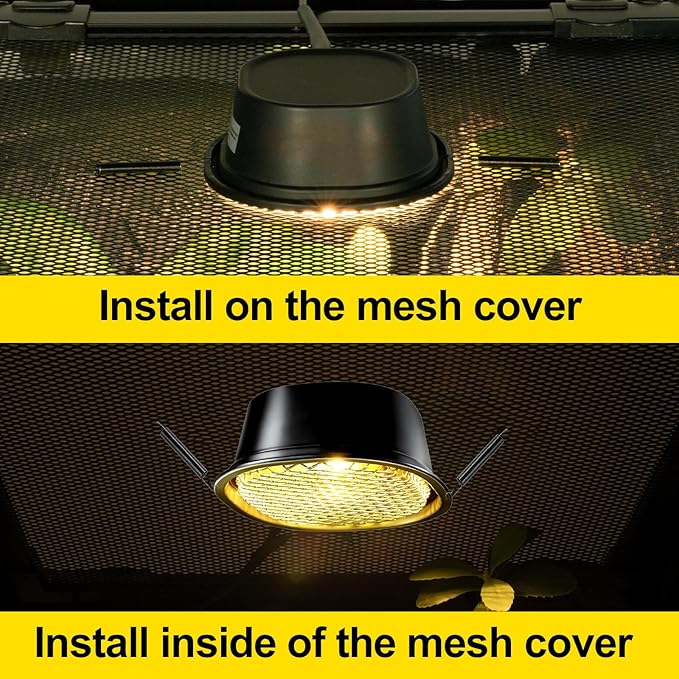 - Secure Spring-Loaded Mounting: The spring-equipped reptile lamp fixture firmly holds onto terrarium mesh lids. Installs above or below mesh surfaces with tool-free clamping for versatile habitat configuration