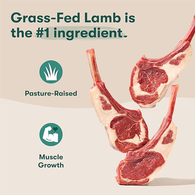 - Supports Strong Muscles: Our kibble is made with real grass-fed lamb as the first ingredient, delivering high-quality protein to support lean muscle development.