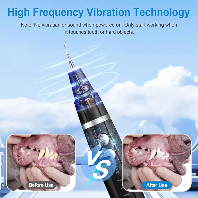 - πππ π & ππ π ππππππ - Dog tooth cleaner will only start to vibrate quickly to remove when the cleaning tip touches hard plaque. And it will stop vibrating to protect the gums when it touches the gums or soft skin.