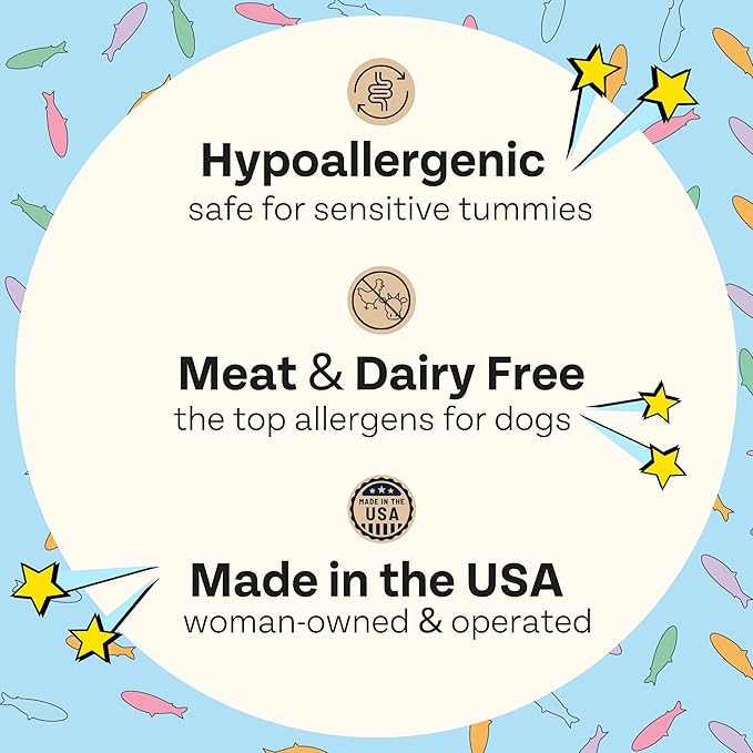 - Hypoallergenic Training Treat: Easier to digest than chicken dog treats, our high value training treats are gentle on sensitive stomachs. We never use chicken, beef, dairy, soy, or wheat to keep our treats safe for dogs with allergies. Plus, they’re not greasy or stinky like other fish-based treats.