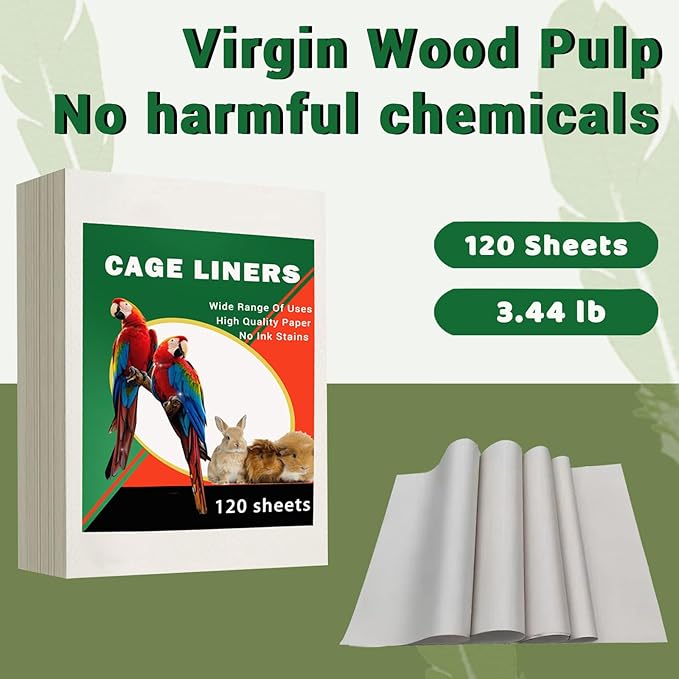 - 🪶Easy to Use: Our product contains 120 sheets of paper bird cage liner, just put the paper in the cage pan, take out bird cage liner papers when cleaning the birdcage, save your time and effort.