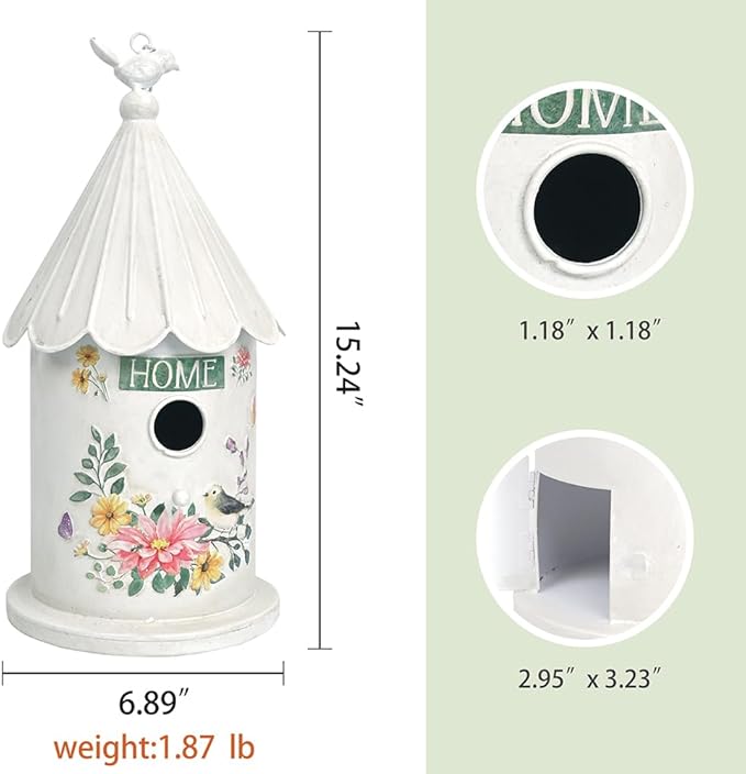 - DURABLE DESIGN: This birdhouse is made by using quality metal and a unique vintage design,this hanging birdhouse can withstand weathering for years to attract feathered friends