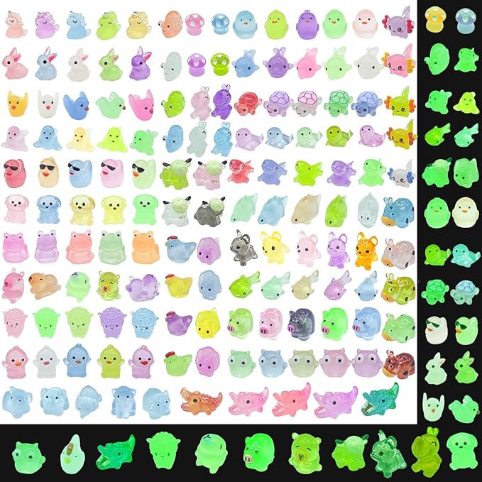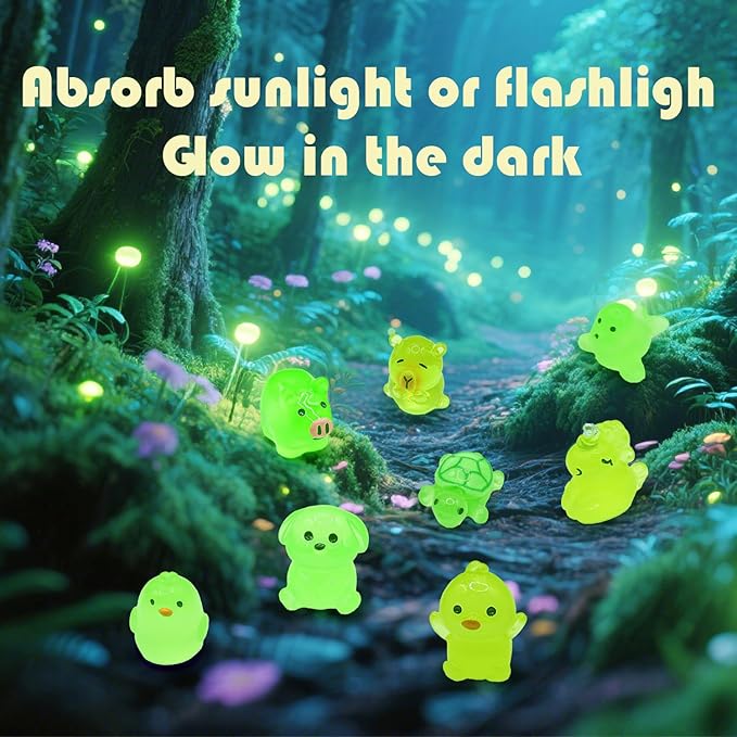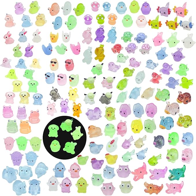 - Variety Pack: Includes 150 Pcs luminous miniature animal figurines and accessories for creating enchanting dollhouses, fairy gardens, DIY crafts. Place tiny animals in sunlight or other strong light such as flashlight for a period of time, they will glow in the dark which give you a stunning visual enjoyment.