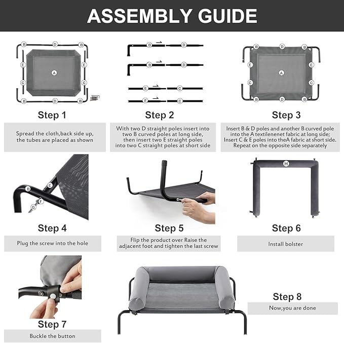 - 【EASY ASSEMBLE COOLING ELEVATED DOG BED SIZE】: Outdoor elevated dog bed for medium and large dogs up to 50 lbs. Very easy to assemble — setup takes just minutes, and even seniors or children can do it. The lightweight design adds portability, making it perfect for travel.