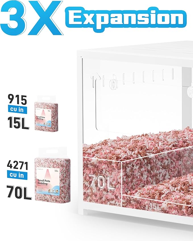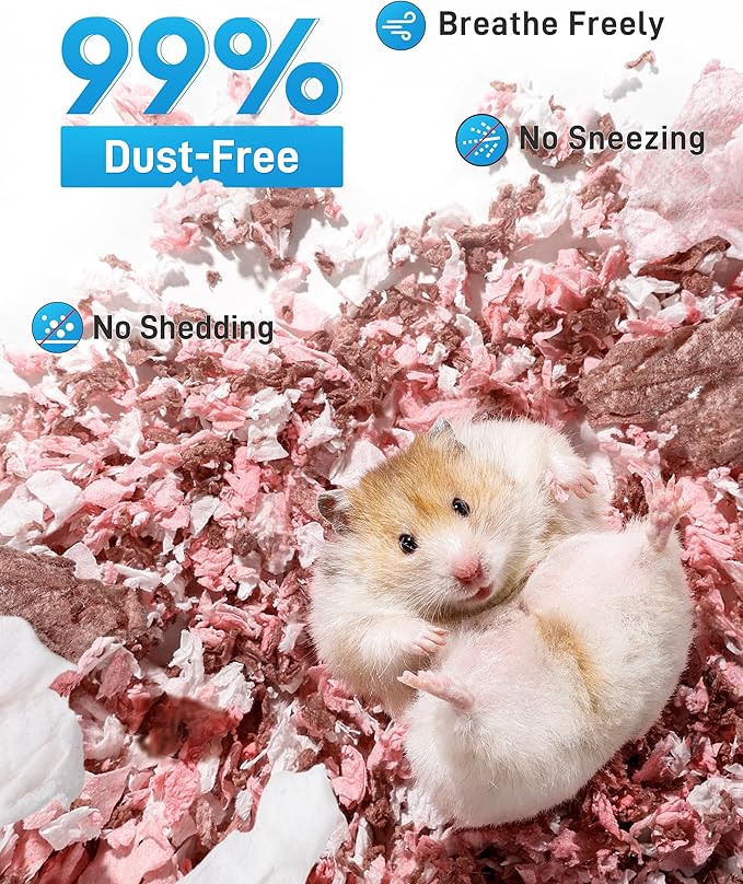 - 99% DUST FREE - Say goodbye to sneezes and sniffles! Our hamster paper bedding is designed to be 99.9% dust-free, making it perfect for pets and owners who suffer from allergies. This rabbit bedding creates a cleaner and healthier living space for your small animals, reducing the airborne particles that can cause discomfort.