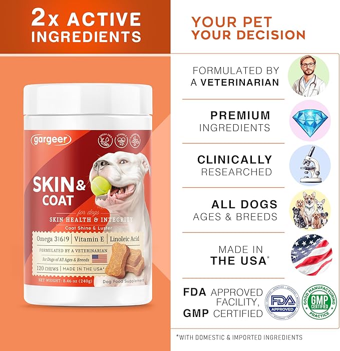 - VETERINARIAN FORMULATED: Professional-grade supplement designed to support skin health and coat shine for dogs of all ages and breeds