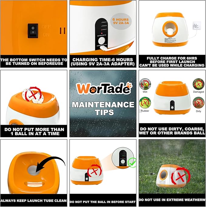 - ๐ Note: It is recommended to use a 9V2A (18W) charger to charge the automatic dog ball launcher. This ball thrower for dogs is recommended for use in open outdoor areas. If you need any help or have any questions during use, please feel free to contact us and we will provide a satisfactory solution in a timely manner.