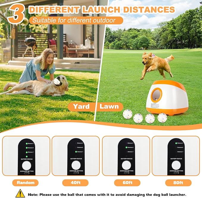 - ๐ถ 3 Adjustable Launch Distances: This dog ball launcher offers three different launch distances โ 40 feet, 60 feet, and 80 feet. You can easily select your desired distance to accommodate different play areas and your dog's energy level. Whether it's a small backyard or a large park, this tennis ball launcher for dogs will keep your dog active and happy.