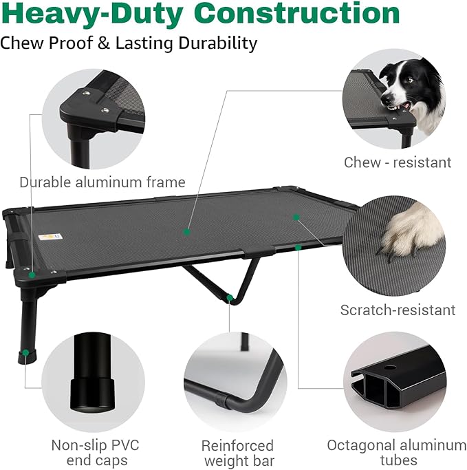 - ๐ฆด Chew-Proof Aluminum Frame & Premium Teslin Mesh - Crafted with octagonal aluminum tubes, reinforced corners, and premium Teslin fabric, this elevated dog bed is chew-proof, rust-resistant, and built to last. The upgraded Teslin mesh offers superior durability and comfortโideal for aggressive chewers.