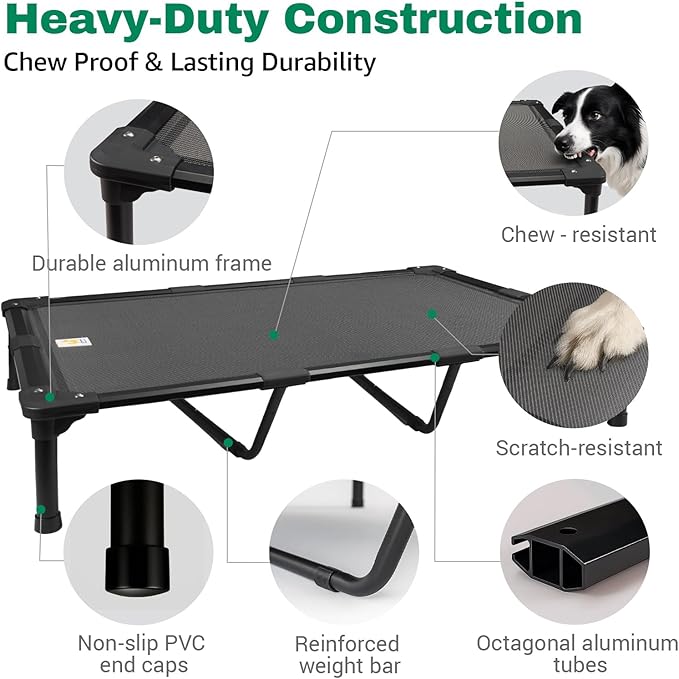 - 🦴 Chew-Proof Aluminum Frame & Premium Teslin Mesh - Crafted with octagonal aluminum tubes, reinforced corners, and premium Teslin fabric, this elevated dog bed is chew-proof, rust-resistant, and built to last. The upgraded Teslin mesh offers superior durability and comfort—ideal for aggressive chewers.