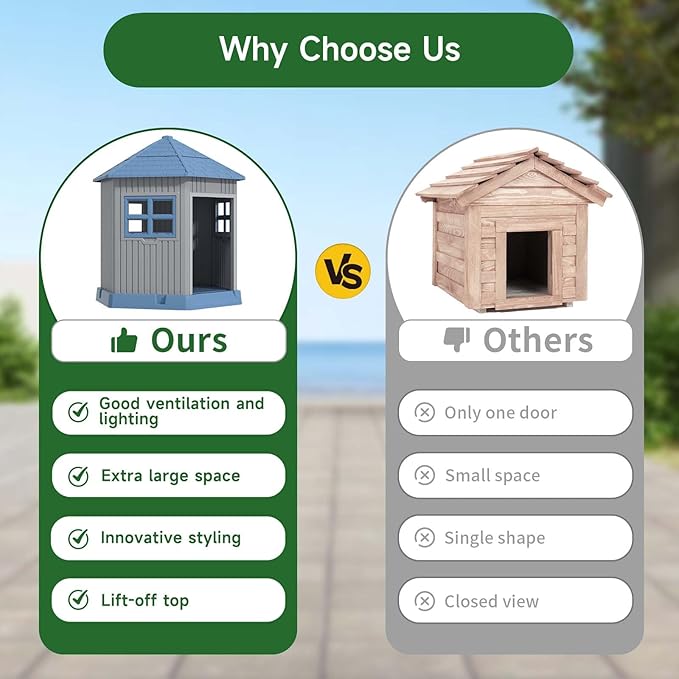 Vixzen Large Outdoor Dog House,Durable Water Resistant Resin Dog House,Doghouse for Small to Large Dogs Indoor or Outside,with Openable Windows and Elevated Floor,Blue