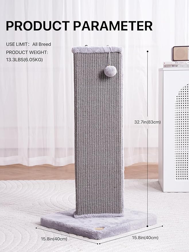 32.7" Tall Cat Scratching Post for Indoor Cats, Sisal Cat Scratcher Post with Hanging Ball