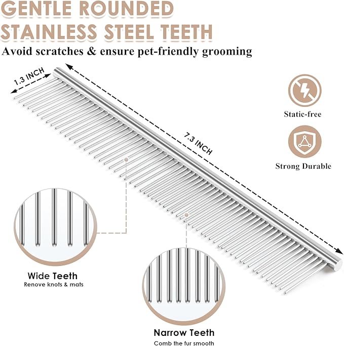 - Complete Grooming Kit Value: 3-in-1 pet grooming kit includes: ①Large slicker brush ②Undercoat rake ③Detangling comb. Safely removes Poodle mats & Persian hairballs. Durable wooden handle withstands frequent use. Vet-recommended for long-haired breeds.