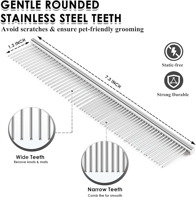 - Complete Grooming Kit Value: 3-in-1 pet grooming kit includes: ①Large slicker brush ②Undercoat rake ③Detangling comb. Safely removes Poodle mats & Persian hairballs. Durable wooden handle withstands frequent use. Vet-recommended for long-haired breeds.