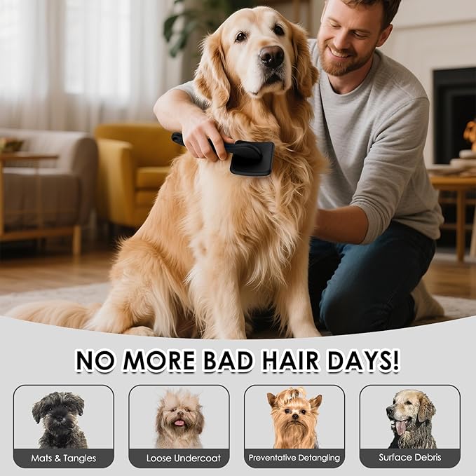 - Pro Slicker Brush for Thick Coats: YOYUPETA's large dog slicker brush removes Golden Retriever undercoat effortlessly. 1" long pins reach deep without scratching. Includes stainless comb & undercoat rake for mats. Groomer's choice for Huskies/Persians. Solve shedding season chaos.