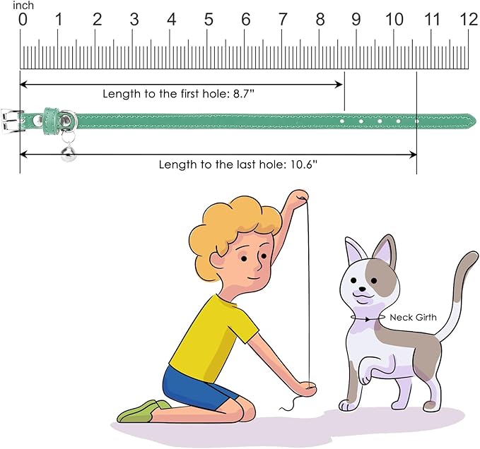 - The size of this collar is designed to fit cats and some small dog breeds, adjusted from 8.7 " - 10.6 ". You need measure your cat's neck girth before purchase to ensure it is suitable