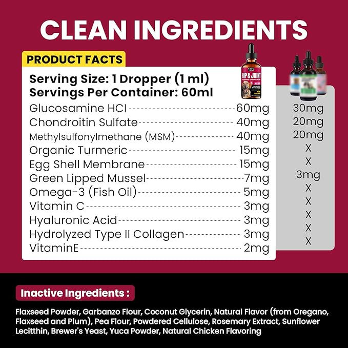 - 【Advanced Hip & Joint Supplement For Dogs】 Our Joint Care drops ease stiffness, support flexibility, and rebuild cartilage. With Chondroitin and MSM, they help cushion joints, reduce inflammation, and keep your pup active, comfortable, and ready for every adventure.