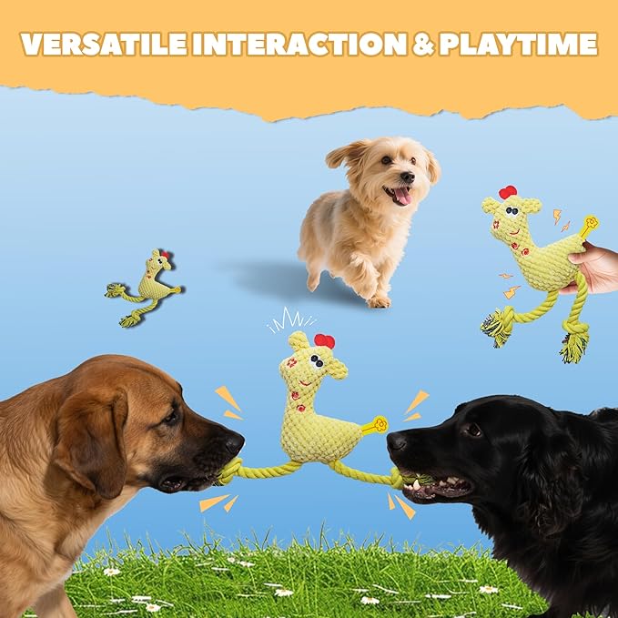 Squeak Plush Dog Toys for Small & Medium Breeds, Chew Resistant Rope to Keep Them Busy for Puppy Teething Chewing, Interactive Indoor/Outdoor Play, Best Pet Gift, Yellow Deer