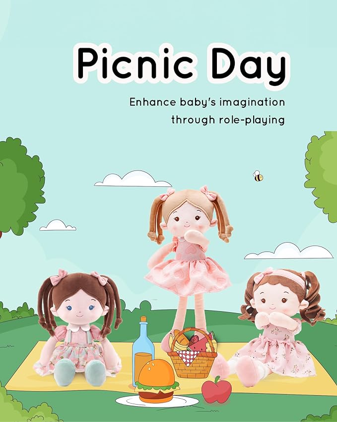 Soft Baby Doll Toys (16''), My First Baby Rag Doll for 1 Year-Old Girl Birthday Gift, Christmas Plush Toys Gift for Toddler Kids Infants- Meadow Girl