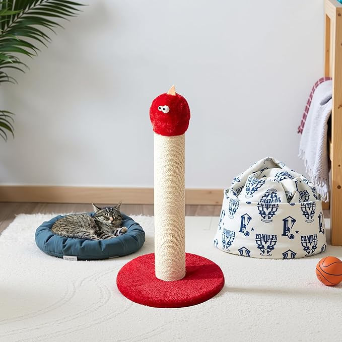 Cat Scratching Post, 22-Inch Tall Sisal Scratcher, Heavy-Duty Cat Climbing Stand for Indoor, Kittens & Large Cats, Red