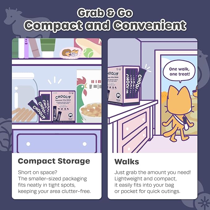 - COMPACT DISPENSER PACK: This Brain Support pack includes 49 sticks to treat your cat or dog. It’s perfect for quick, grab-and-go use, easy to carry in a bag for trips, or convenient to keep near your pet supplies.
