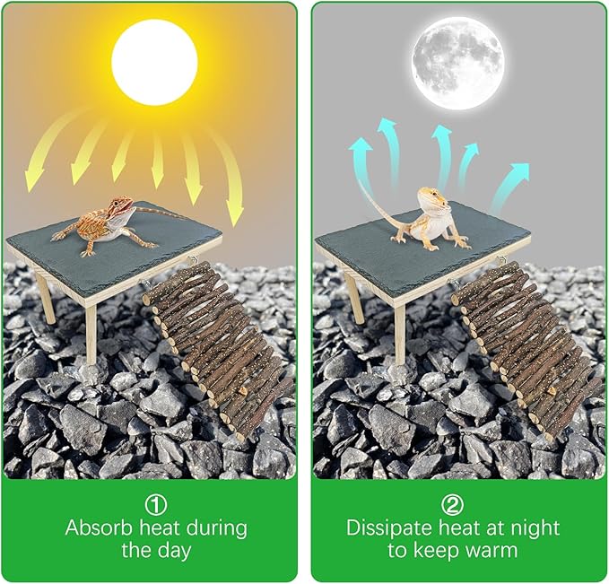 - Easy to Clean and Maintain: Lizard basking platform has been treated to facilitate daily cleaning and maintenance. Reptile platform with ramp can be used after being washed with water and dried, or simply wiped with a damp cloth