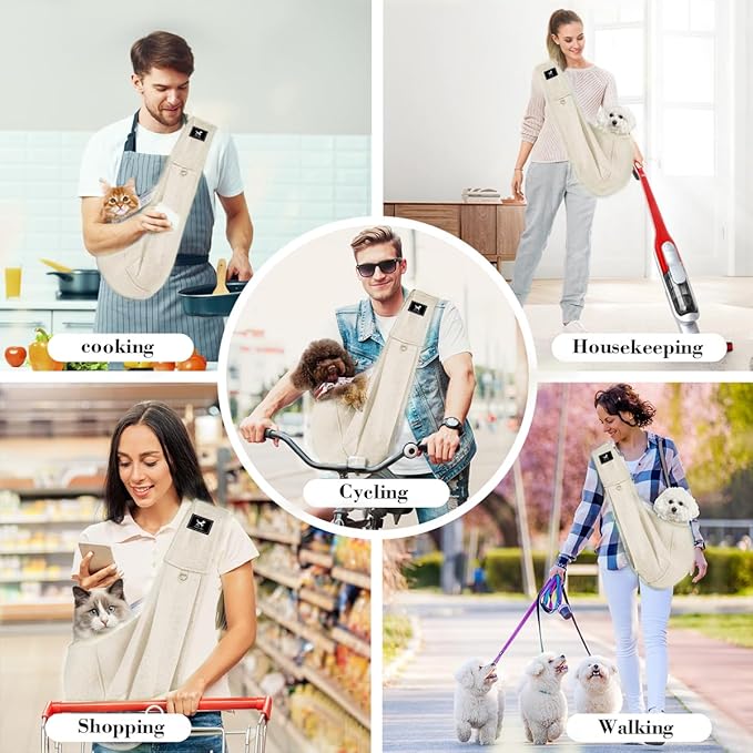 Dog & Cat Carrier Sling, Adjustable Soft Padded Shoulder Puppy Carrier, Hands-Free Dog Carrier Bag with Double Safety Buckles Premium Material for Outdoor Travel (Apricot, M)