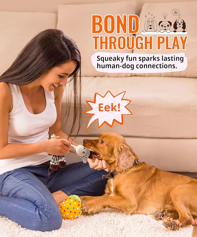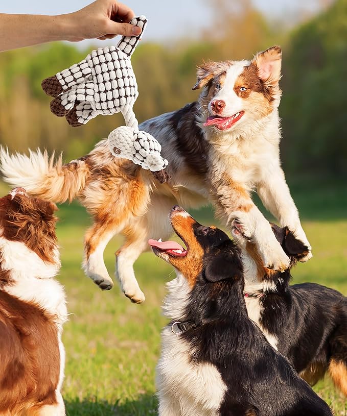 Squeaky Plush Dog Toys - Adorable Animal Designs with Soft Cotton Filling, Cute Stuffed Dog Chew Toys for Small, Medium Non-Aggressive Chewing Dogs Chewer (White - Giraffe/Lamb)
