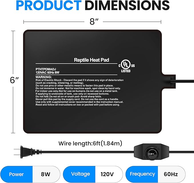 - Versatile Use: Suited for a variety of uses, including reptile care, seed germination, cigar storage, and fermentation. It provides 24/7 warmth and is designed to maintain a stable temperature without disrupting the natural sleep cycle of pets