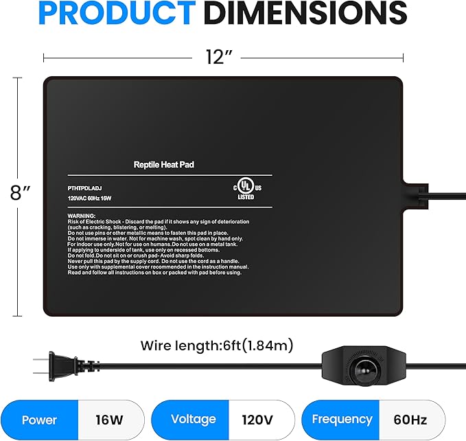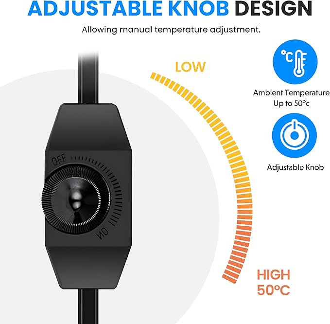 - Versatile Use: Suited for a variety of uses, including reptile care, seed germination, cigar storage, and fermentation. It provides 24/7 warmth and is designed to maintain a stable temperature without disrupting the natural sleep cycle of pets
