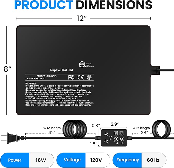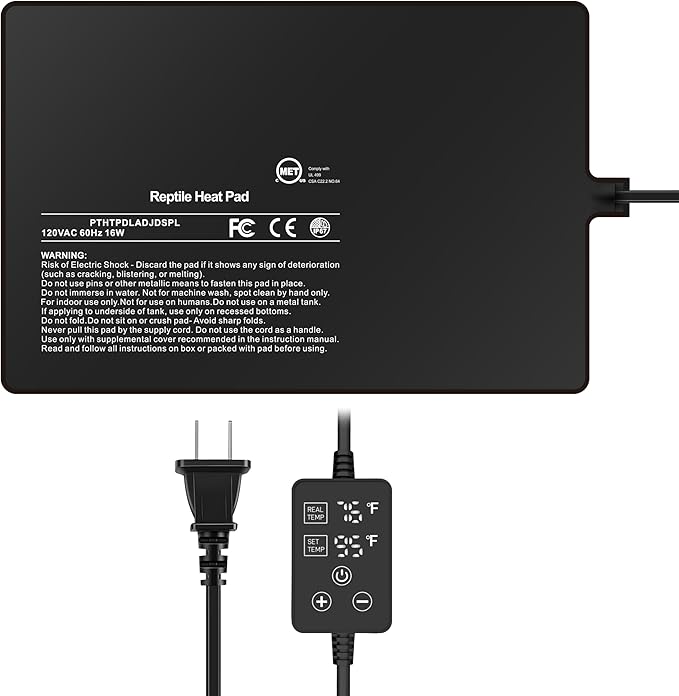 - Adjustable Temperature Control: Featuring a wide-range thermostat, this reptile heat mat facilitates precise temperature regulation within the range of 0-50°C (32-122°F), catering to the diverse thermal requirements of various reptile species