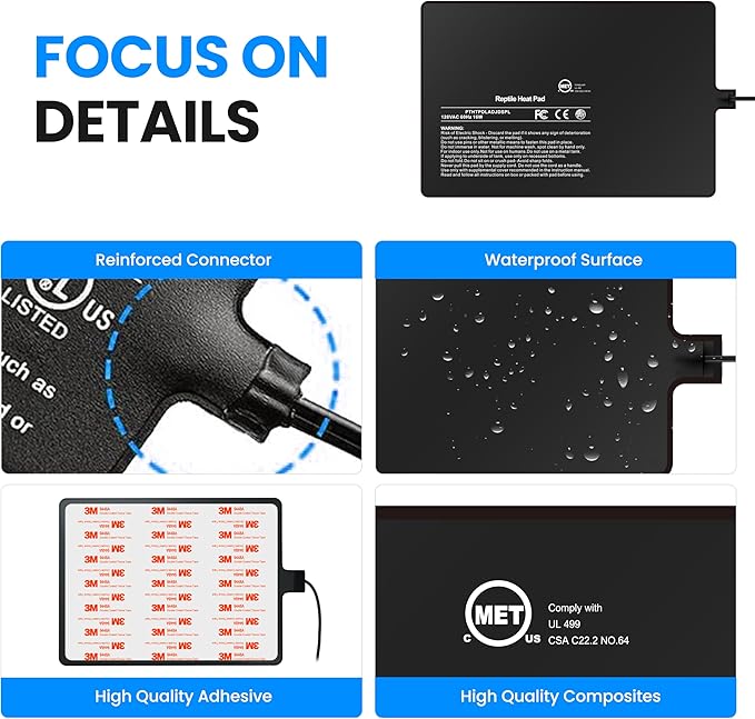 - Durable and Waterproof Design: Constructed with a PVC surface, the heating pad is not only waterproof but also provides superior insulation, offering a reliable and long-lasting solution for reptile tank accessories, suitable for routine maintenance