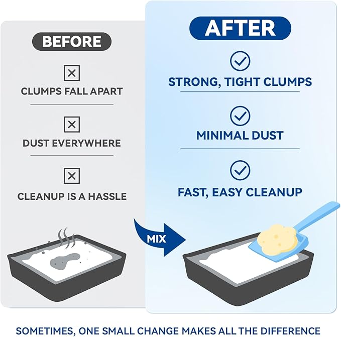 - 【ONE Scoop Cassava Makes Difference】Using clay, tofu, or other cat litters? Just add one scoop of OPET cassava cat litter to dramatically improve clumping and drastically reduce dust. Tips***Using tapioca litter ALONE has poor odor control and causes more tracking.