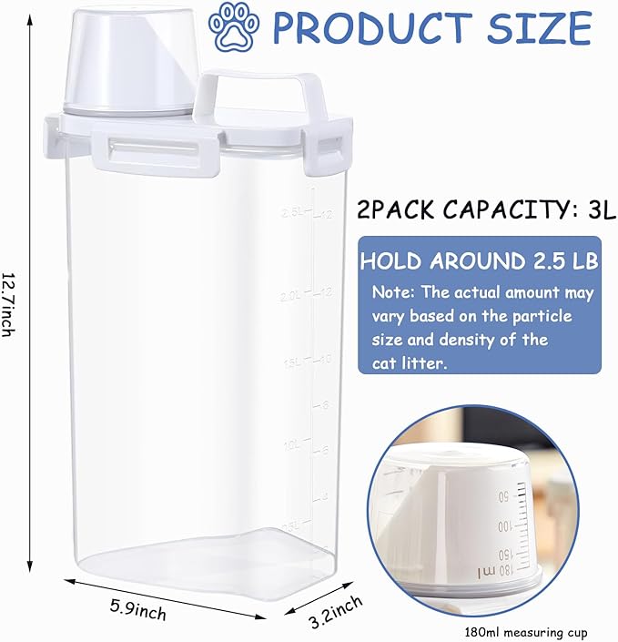 - Generous Capacity to Meet Your Needs:Each container boasts a spacious 2.5L capacity, allowing you to store a total of 5L—roughly 10lbs—of cat litter. That's plenty to keep your feline friend's litter box full and fresh for extended periods, saving you time and hassle from frequent refills. Whether you have a single cat or a multi - cat household, our containers have you covered