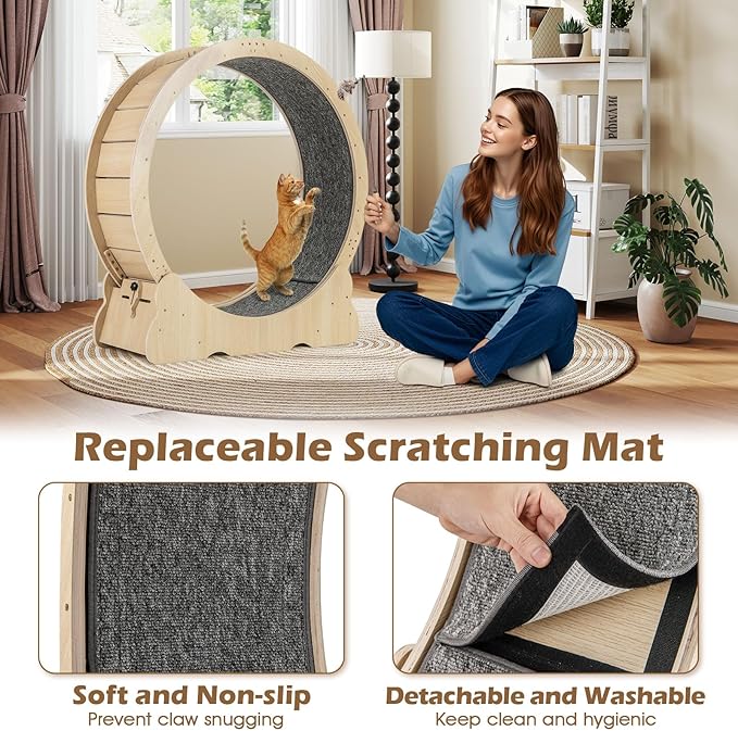 - Easy Maintenance: The runaway of the treadmill is crafted of soft and non-slip carpet, which prevents claw snugging while meeting the needs of scratching. Additionally, the mat is detachable and washable, providing a hygienic surface for your cat to engage with regularly.