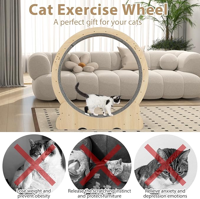 - Healthy Sports for Cats: Support your cat's physical and emotional well-being! This non-slip cat wheel satisfies scratching instincts, reducing furniture damage while keeping claws healthy. Meanwhile, regular exercise helps alleviate cats' anxiety, depression, and boredom, promoting a happier, more balanced personality.