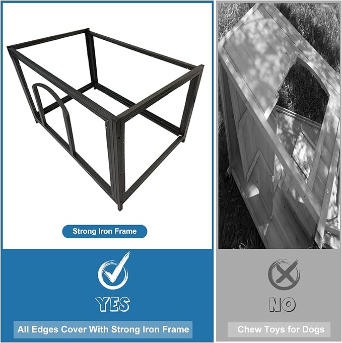 - All-Weather Durability: Sturdy metal frame + slanted waterproof roof prevents rain/snow buildup. Elevated base keeps interior dry and resists ground moisture, rot, and pests