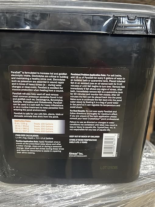 - Improves Poor Parasite Conditions - ParaSalt will help ward off the most common protozoan parasites found in ponds. Helps prevent common diseases while supporting fish health.
