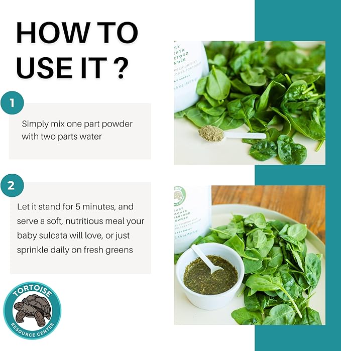 - ARE YOU STARVING YOUR SULCATA TORTOISE? Give them our complete Balanced Nutrition – Specially formulated for baby grassland tortoises, promoting steady growth and healthy shell development. The Tortoise Resource Center Superfood Powder provides everything your growing tortoise needs for health and immunity.