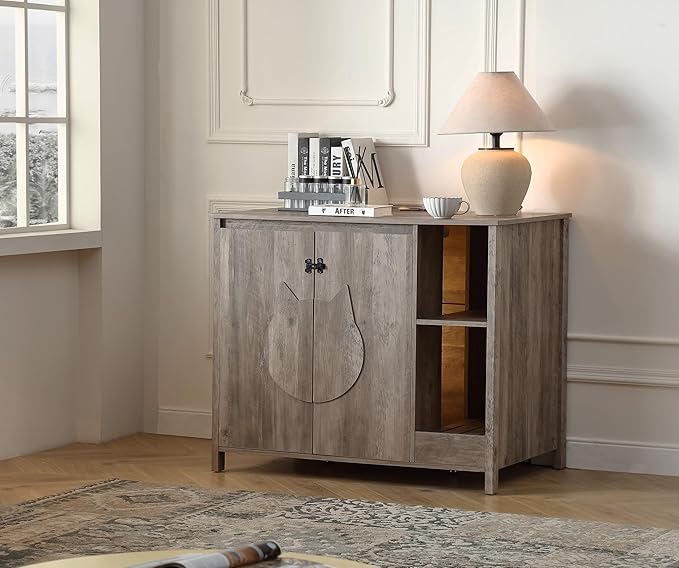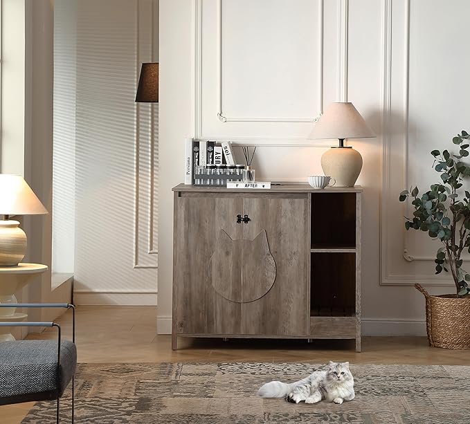 - 4)【Dog proof litter robot cabinet】;We exclusively design this litter robot enclosure box with a adjustable shlelf to prevent dog from entering to eat litter or hurt cat. This shelf can protect your cat, meanwhile, providing a space for you to place cat stuff.