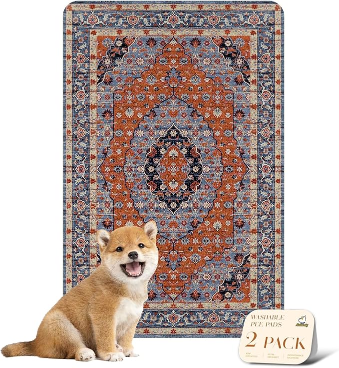 nunubaby Washable Pee Pads for Dogs, Stylish, Non-Slip and Leak-Proof Pee Pads. Reusable Potty Pads for Dogs for Crates and Floors.(Red/Multi, 24" x36")