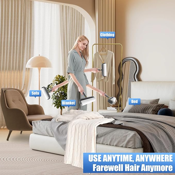 - FOR PET HAIR AND SURFACES: The lint roller refills are designed for pet hair removal and easily remove hair and debris from clothing, furniture, carpets, linens, cars and other surfaces. Not only that, the large lint roller refill will also remove dust, wool, bathroom hair, etc., to make your home environment more clean and tidy.