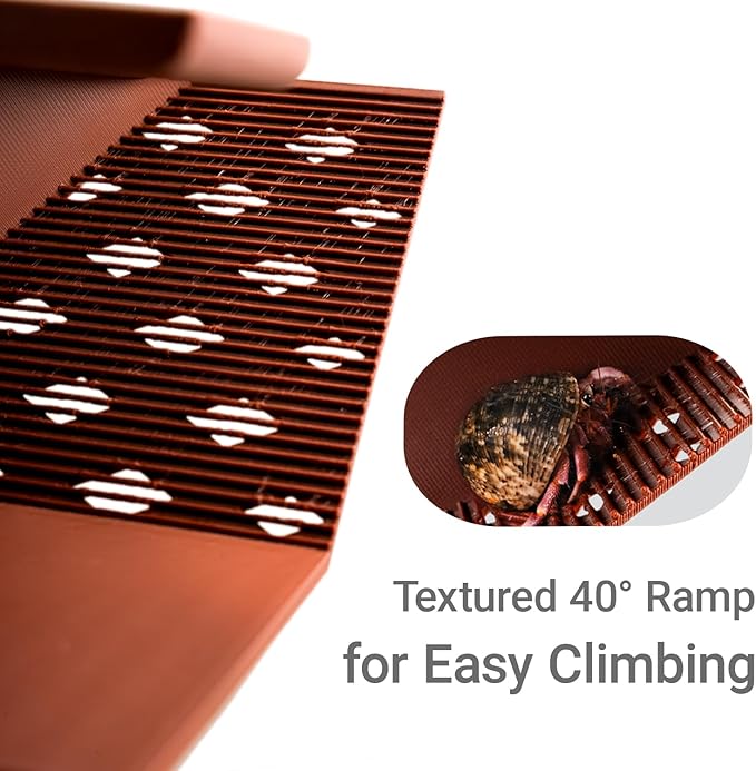 - Stairway Access to Burrow Below: A thoughtfully designed stairway with a gentle 40° slope leads into the underground tunnel. The interior features a textured surface to prevent slipping, making it easier for your hermit crab to climb in and out—especially when going down. With a tunnel height of 2.4 inches, it comfortably accommodates most hermit crabs.