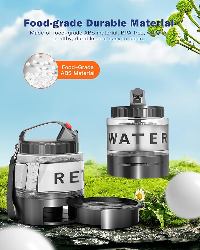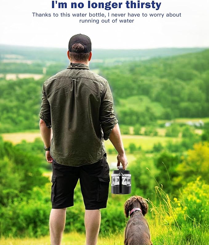 - 【Portable & Travel-Friendly Dog Water Jug】Equipped with an ergonomic handle, hand strap, and metal carabiner, this travel dog water bottle clips onto backpacks, leashes, or bags for easy carrying. The clear capacity markings help you track how much water your pet is drinking, keeping them healthy and hydrated.