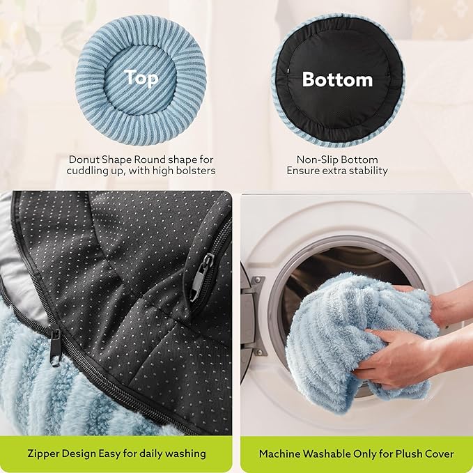 - Washable Dog Bed: With its zipper design, the cover of this donut dog bed is removable and machine washable: gentle cycle, tumble dry, low heat. Notice: the inner foam is not washable. Easy care for the dog beds makes your pets easier to keep a comfortable and clean sleeping space! If you have any other questions about our products, please contact us with no worries!