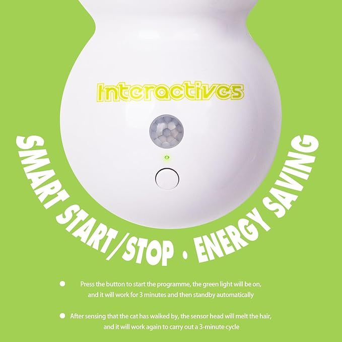 - ๐พ Intelligent Motion Sensor Technology - Press the button to start the programme, the green light comes on, it works for 3 minutes and then automatically standsby. After sensing the cat walking by, the sensor head triggers and works again for a 3-minute cycle. Mimics the irregular movement of prey to stimulate your cat's natural hunting instincts and keep your cat entertained for hours.