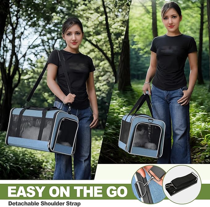 - Stress-Free Travel Ready Bag - Adjustable, detachable shoulder strap allows for hands-free carrying for doggies during airports trips or vet visits. Collapsible case can be stored flat for convenient storage