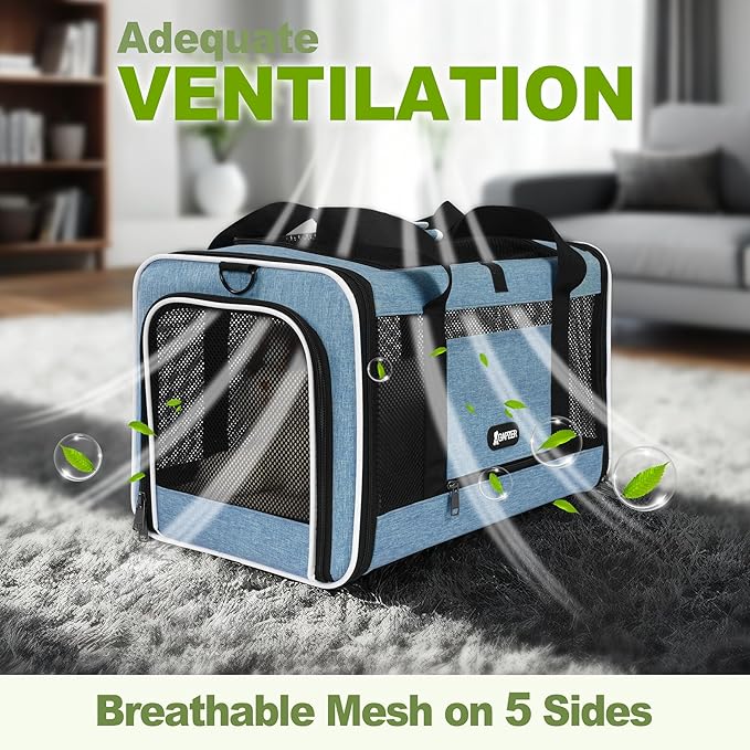 - 360° Ventilation & Dual-Entry - Four-sided mesh ensure constant airflow during transport, while the wide top opening and side door facilitate stress-free transfers and quick check-ins for rabbits and puppies