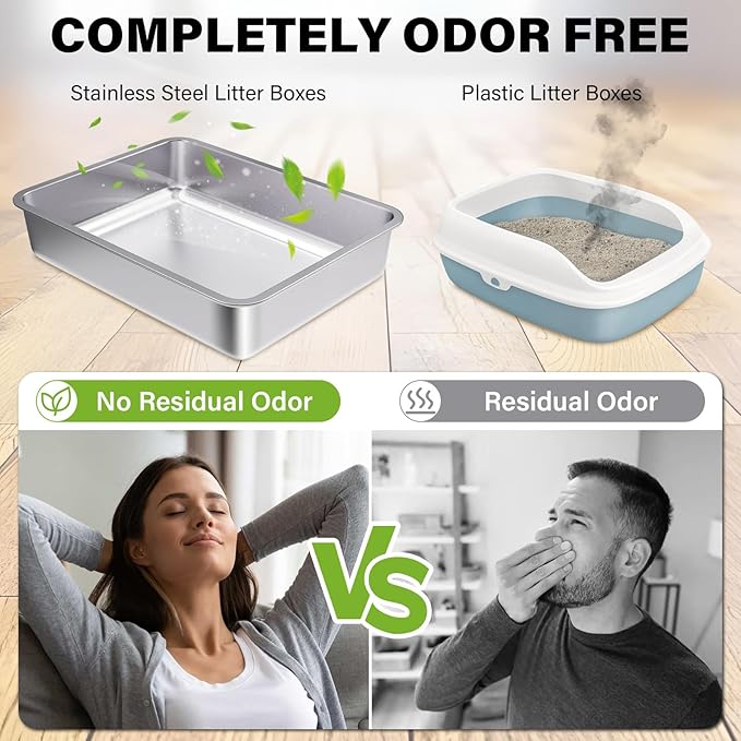 - Metal Cat Litter Box made by high quality stainless steel, tough & heavy duty, and never ever absorbs odors even after months
